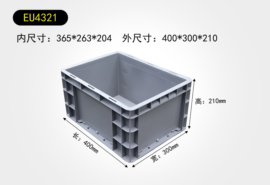 | EU4321物流箱 | 365*263*204 | 400*300*210 | 灰/白/藍(lán) | 印字/燙金 |